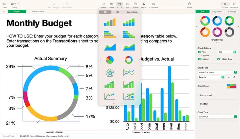 Get started with one of over 30 Apple-designed templates for your home budget, checklist, invoice, mortgage calculator, and more. Add tables, charts, text, and images anywhere on the flexible canvas. As soon as you start typing a formula, you'll get instant suggestions and built-in help for hundreds of powerful functions.