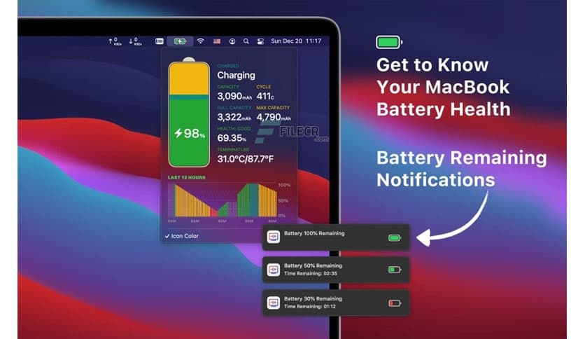 This program allows you to see real-time network speeds right in menu bar, see your daily data usage & get to know your MacBook battery health.