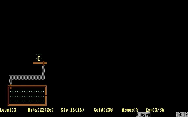 The user interface in Rogue PC game download is minimalistic. The game employs ASCII characters to represent everything within the dungeon. At first glance, this design choice might seem overly simplistic, but it makes the game unique. The game encourages players to use their imagination by stripping away the graphical complexity, turning every ASCII symbol into a vivid part of the dungeon’s world.
