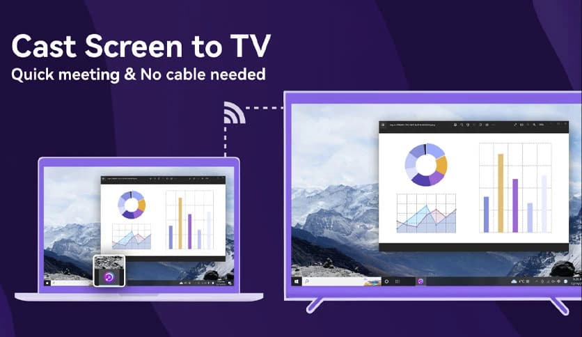 This software goes beyond basic screen mirroring. This app lets you stream your phone's screen with files, videos, and photos. It bridges your mobile device and PC, offering a smooth, lag-free experience. Additionally, you can cast your PC screen to your TV with just one click, enhancing your viewing experience.